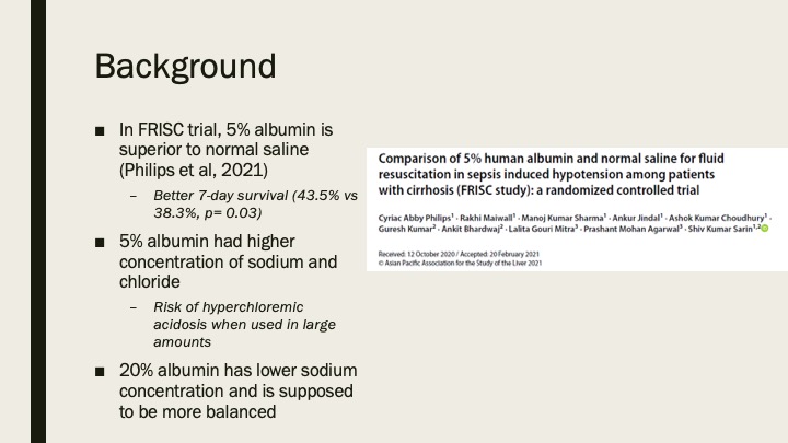 A randomized-controlled trial comparing 20% albumin to plasmalyte in patients with cirrhosis and sepsis induced hypotension